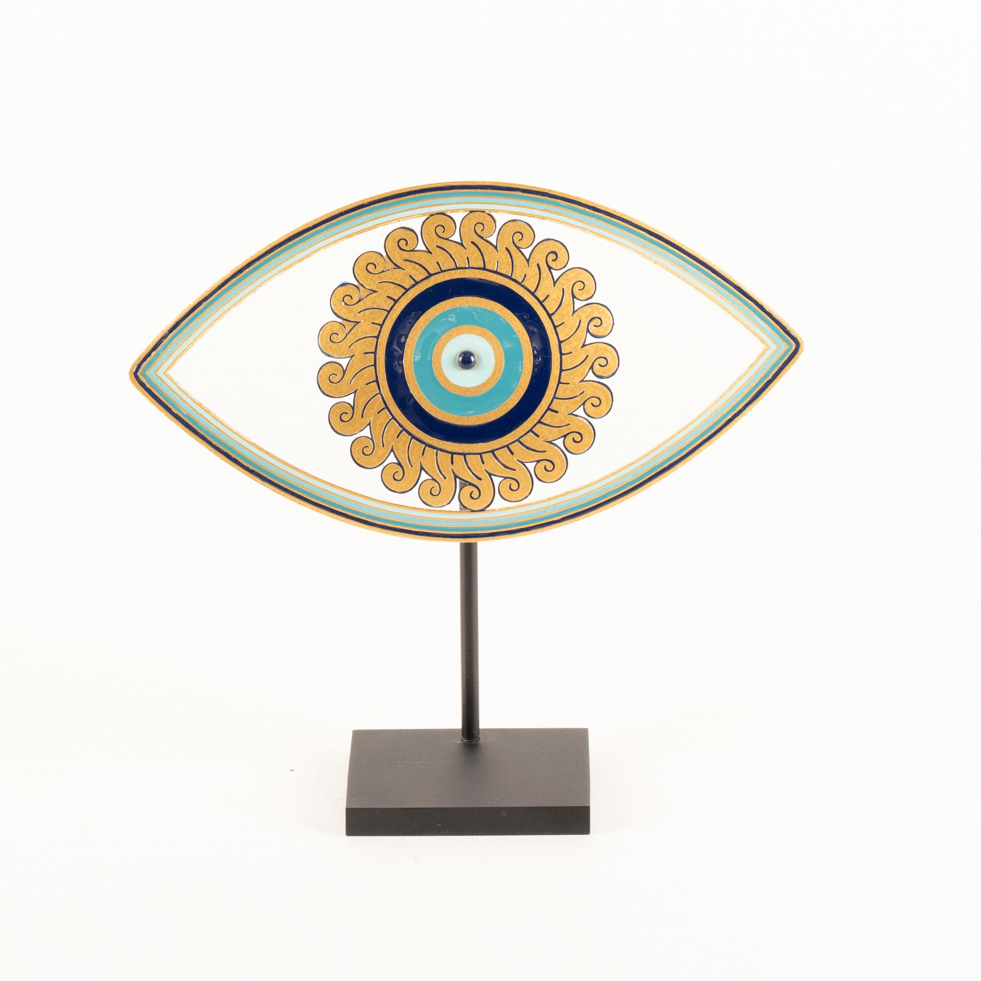 Sadece bir desen değil, forma bürünmüş bir enerji. Güneş Göz, ismini aldığı yaşam kaynağının ışıltısını, düzlemsel kalarak değil; dışa doğru bombeli özel formuyla mekanınıza yayıyor. Miras atölyelerinde ustalara özgü tekniklerle özel olarak şekillendirilen bu tasarım, kazandığı üç boyutlu hacim sayesinde gerçek bir göz gibi derinlikli ve canlı durur. Çevresindeki güneş ışınlarını andıran motifler ve boyutlu yapısıyla ışığı farklı açılardan yakalayan Güneş Göz; salonunuzda sıcak, koruyucu ve boyutlu bir sanat eseri olarak parlar.