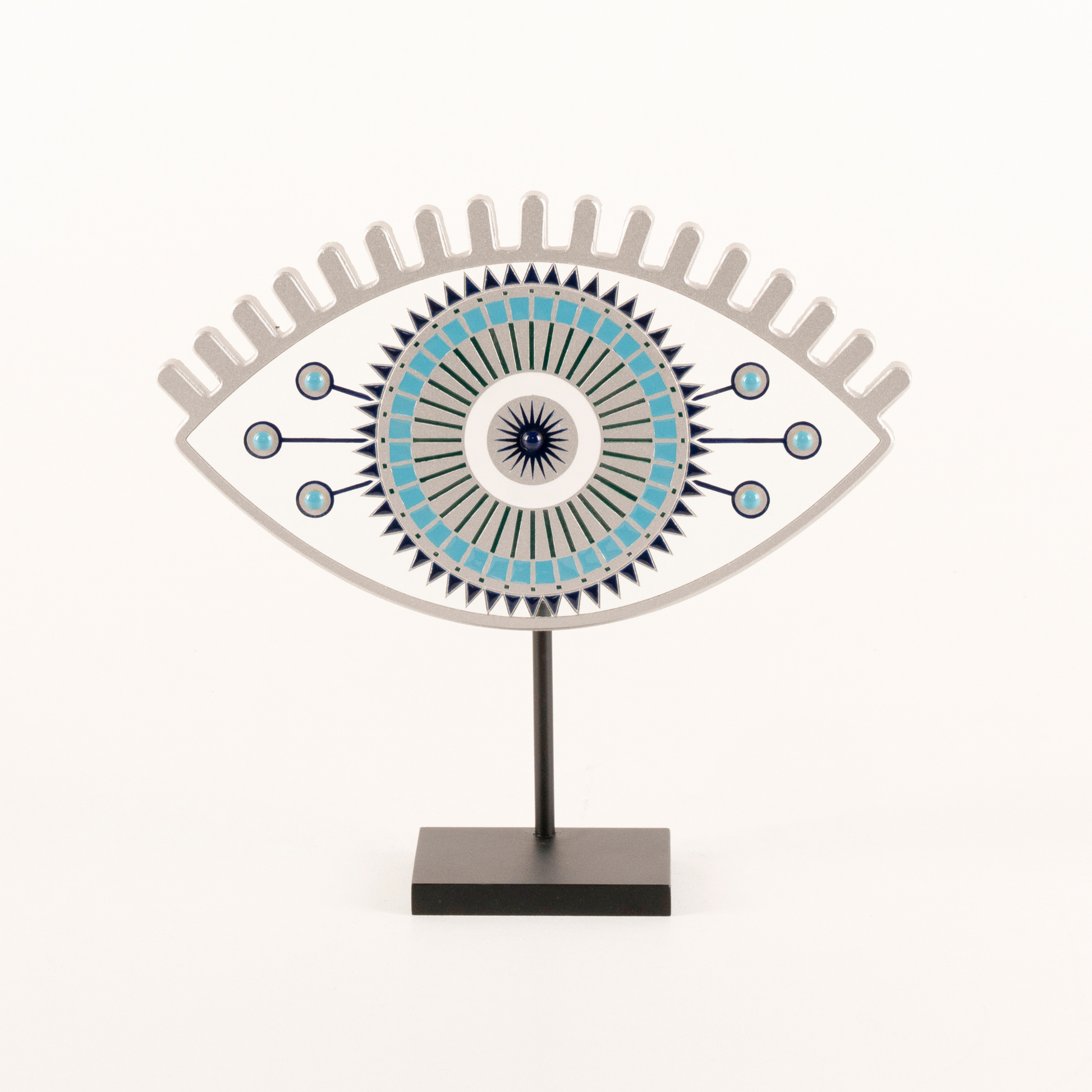 Göz, ruhun aynasıdır; kirpikler ise o aynanın en zarif çerçevesi. Kirpik Göz, geleneksel nazar boncuğu formunu, dış çeperindeki stilize kirpik detayları ve merkezindeki derin odak noktasıyla yeniden yorumluyor. Koruyucu bir tılsım olmanın ötesinde, detaylarındaki ince işçilik ve kullanılan eşsiz renklerle mekana karakter katan Kirpik Göz; geçmişin mirasını modern dekorasyon kodlarıyla bugüne taşıyor.