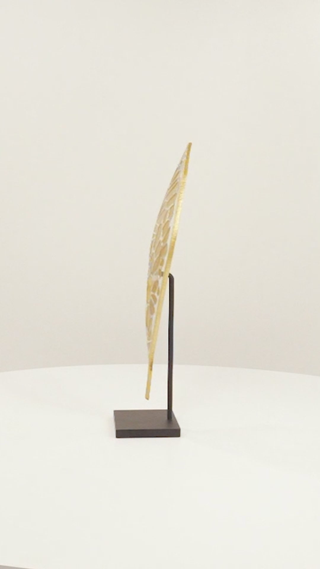 Doğada bir yaprağın zamanla rüzgar ve yağmurla şekillenmesi, ona sadece yaşanmışlık değil, aynı zamanda ışığın içinden süzülebileceği yeni pencereler açar. Yaprak - Doku, bu doğal yıpranmanın içindeki büyüleyici güzelliği camın ışıltısıyla donduruyor. 34,5 cm yüksekliğindeki dikey formu, üzerindeki irili ufaklı organik boşluklarla birleşerek mekana derinlik ve ferahlık katar. Ustalarımızın serbest şekillendirme tekniğiyle camda hayat verdiği bu tasarım, ışığı hem yüzeyinden yansıtır hem de deliklerinden süzerek duvarınızda adeta yaşayan bir gölge tablosu oluşturur. Modern bir sanat objesi arayanlar için hem masada hem de duvarda dikkat çekici bir odak noktasıdır.